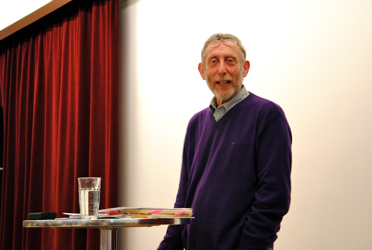 The fifth lecture in this series jointly promoted by DARE, NATE and UKLA, “Looking for Language”, was given by Michael Rosen at the 2014 NATE conference in Bristol on the 27th June. Tom Rank of NATE commented: “Michael Rosen was in top form on the first day of NATE Conference, moving from the personal (a poem about eating hot potatoes round the family table – we all had to join in) to the educational, grammatical and political”.